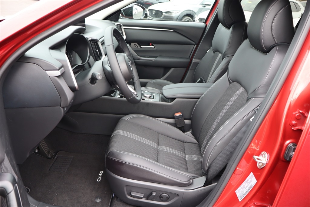 Mazda Certified Pre-Owned Certified, 2.5L 4-Cylinder, 4-Wheel Disc Brakes, 8 Speakers, ABS brakes, Air Conditioning, Alloy wheels, AM/FM radio, AppLink/Apple CarPlay and Android Auto, Auto High-beam Headlights, Automatic temperature control, Brake assist, Bumpers: body-color, Cargo Blocks, Cargo Package, Carpet Cargo Mat, Delay-off headlights, Driver door bin, Driver vanity mirror, Dual front impact airbags, Dual front side impact airbags, Electronic Stability Control, Emergency communication system: MAZDA CONNECT, Exterior Parking Camera Rear, Front anti-roll bar, Front Bucket Seats, Front Center Armrest, Front dual zone A/C, Front reading lights, Front wheel independent suspension, Fully automatic headlights, Half Leatherette Seat Trim, Heated door mirrors, Heated front seats, Illuminated entry, Knee airbag, Leather Shift Knob, Leather steering wheel, Low tire pressure warning, Occupant sensing airbag, Outside temperature display, Overhead airbag, Overhead console, Panic alarm, Passenger door bin, Passenger vanity mirror, Power door mirrors, Power driver seat, Power Liftgate, Power steering, Power windows, Radio data system, Radio: AM/FM/HD 8-Speaker Audio Sound System, Rain sensing wipers, Rear seat center armrest, Rear window defroster, Rear window wiper, Remote keyless entry, Soul Red Crystal Metallic Paint Charge, Speed control, Speed-sensing steering, Split folding rear seat, Spoiler, Steering wheel mounted audio controls, Tachometer, Telescoping steering wheel, Tilt steering wheel, Traction control, Trip computer, Turn signal indicator mirrors, Variably intermittent wipers, Certified Pre Owned, 2.5L 4-Cylinder.