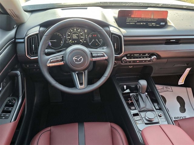 2.5L 4-Cylinder, 12 Speakers, 4-Wheel Disc Brakes, ABS brakes, Air Conditioning, Alloy wheels, AM/FM radio: SiriusXM, AppLink/Apple CarPlay and Android Auto, Auto High-beam Headlights, Auto-dimming Rear-View mirror, Automatic temperature control, Black Lug Nuts and Black Wheel Locks, Brake assist, Bumpers: body-color, Delay-off headlights, Driver door bin, Driver vanity mirror, Dual front impact airbags, Dual front side impact airbags, Electronic Stability Control, Emergency communication system: MAZDA CONNECT, Exterior Parking Camera Rear, Front anti-roll bar, Front Bucket Seats, Front Center Armrest, Front dual zone A/C, Front reading lights, Front wheel independent suspension, Fully automatic headlights, Garage door transmitter: HomeLink, Heads-Up Display, Heated and Ventilated Front Seats with 3 Level Adjustment, Heated door mirrors, Heated front seats, Heated rear seats, Heated steering wheel, Illuminated entry, Knee airbag, Leather Seat Trim, Leather Shift Knob, Leather steering wheel, Low tire pressure warning, Memory seat, Occupant sensing airbag, Outside temperature display, Overhead airbag, Overhead console, Panic alarm, Passenger door bin, Passenger vanity mirror, Power door mirrors, Power driver seat, Power Liftgate, Power moonroof, Power passenger seat, Power steering, Power windows, Radio data system, Radio: AM/FM/HD Bose 12-Speaker Audio Sound System, Rain sensing wipers, Rear seat center armrest, Rear window defroster, Rear window wiper, Remote keyless entry, Speed control, Speed-sensing steering, Split folding rear seat, Spoiler, Steering wheel mounted audio controls, Tachometer, Telescoping steering wheel, Tilt steering wheel, Traction control, Trip computer, Turn signal indicator mirrors, Variably intermittent wipers, Ventilated front seats, Weather Package, Wheels: 19 x 7.5J Aluminum Alloy Black Metallic with Machine Cut, Wind Chill Pearl Paint Charge, 2.5L 4-Cylinder.