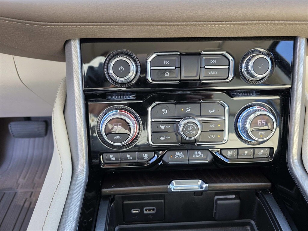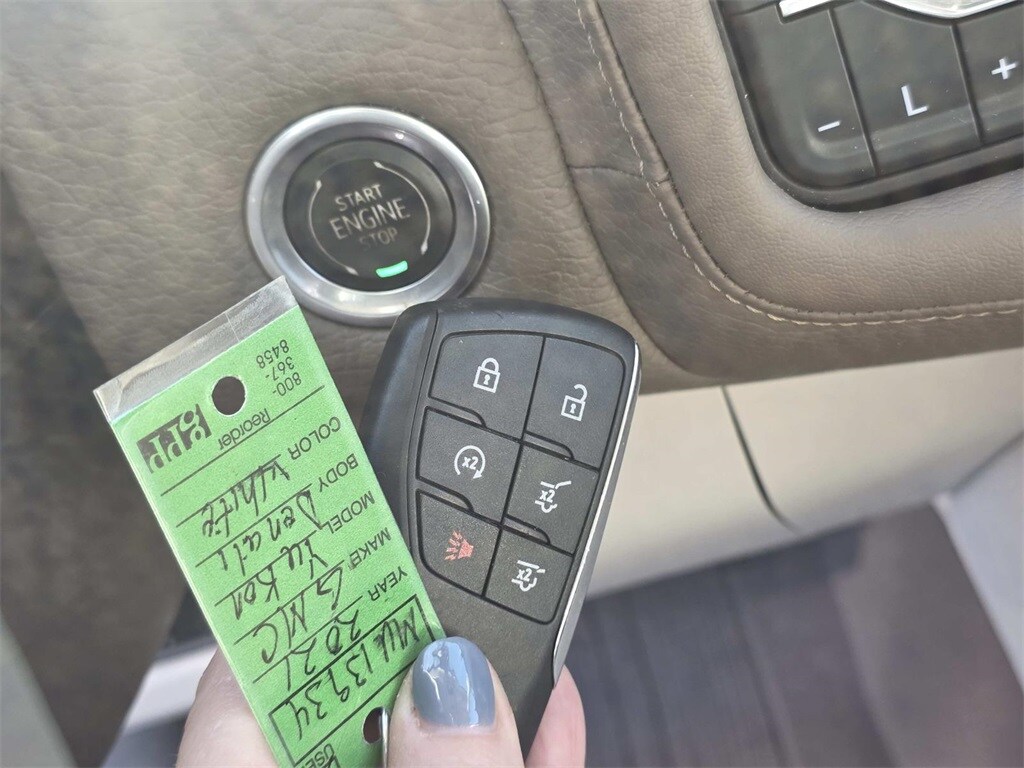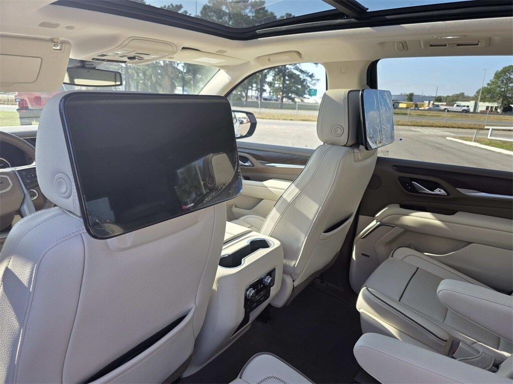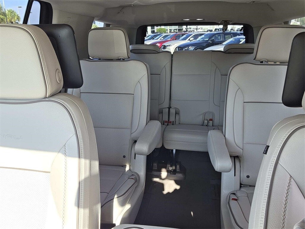 4WD, 12-Way Power Seat Adjusters, 14 Speakers, 15" Diagonal Multi-Color Head-Up Display, 2 Presets For Outside Rearview Mirrors, 3.23 Rear Axle Ratio, 3rd Row 60/40 Power-Folding Split-Bench Seat, 3rd row seats: split-bench, 4-Wheel Disc Brakes, ABS brakes, Adaptive suspension, Air Conditioning, Alloy wheels, AM/FM radio: SiriusXM with 360L, Apple CarPlay/Android Auto, Auto High-beam Headlights, Auto-dimming door mirrors, Auto-dimming Rear-View mirror, Auto-leveling suspension, Automatic Emergency Braking, Automatic temperature control, Bodyside moldings, Bose 14-Speaker Surround w/CenterPoint, Brake assist, Bright Front & Rear Door Sill Plates, Bumpers: body-color, Chrome Door Handles w/Body-Color Strip, Compass, Delay-off headlights, Driver door bin, Driver vanity mirror, Dual Exhaust System, Dual front impact airbags, Dual front side impact airbags, Dual-Pane Panoramic Power Sunroof, Electronic Stability Control, Emergency communication system: OnStar and GMC connected services capable, Following Distance Indicator, Forward Collision Alert, Four wheel independent suspension, Front & Rear Park Assist, Front anti-roll bar, Front Bucket Seats, Front Center Armrest, Front dual zone A/C, Front fog lights, Front Pedestrian Braking, Front reading lights, Fully automatic headlights, Galvano Bodyside Moldings, Garage door transmitter, Hands-Free Power Programmable Rear Liftgate, HD Radio, HD Surround Vision, Heads-Up Display, Heated & Ventilated Driver & Front Passenger Seats, Heated 2nd Row Outboard Position Seats, Heated Automatic Steering Wheel, Heated door mirrors, Heated Driver & Front Passenger Seats, Heated front seats, Heated rear seats, Heated steering wheel, Hill Descent Control, Illuminated entry, Inside Rear-View Auto-Dimming Mirror, IntelliBeam Automatic High Beam On/Off, Lane Change Alert w/Side Blind Zone Alert, Lane Keep Assist w/Lane Departure Warning, Leather steering wheel, License Plate Front Mounting Package, Low tire pressure warning, Magnetic Ride Control Suspension, Memory seat, Navigation System, Occupant sensing airbag, Outside Heated Power-Adjustable Mirrors, Outside temperature display, Overhead airbag, Overhead console, Panic alarm, Passenger door bin, Passenger vanity mirror, Perforated Leather Seating Surfaces, Power door mirrors, Power driver seat, Power Liftgate, Power passenger seat, Power Release 2nd Row Bucket Seats, Power steering, Power Tilt & Telescopic Steering Column, Power windows, Power-Retractable Assist Steps, Preferred Equipment Group 5SA, Radio: AM/FM/SiriusXM w/Navigation, Rain sensing wipers, Rear air conditioning, Rear anti-roll bar, Rear Cross Traffic Alert, Rear Pedestrian Alert, Rear reading lights, Rear Seat Media System, Rear window defroster, Rear window wiper, Remote keyless entry, Roof rack: rails only, Safety Alert Seat, Security system, SiriusXM w/360L, Speed control, Speed-sensing steering, Split folding rear seat, Spoiler, Steering wheel memory, Steering wheel mounted audio controls, Tachometer, Telescoping steering wheel, Tilt steering wheel, Traction control, Trip computer, Turn signal indicator mirrors, Universal Home Remote, Variably intermittent wipers, Ventilated front seats, Voltmeter, Wheel Locks, Wheels: 20" x 9" 6-Spoke Polished Aluminum, Wheels: 22" x 9" Bright Machined Aluminum, 4WD.