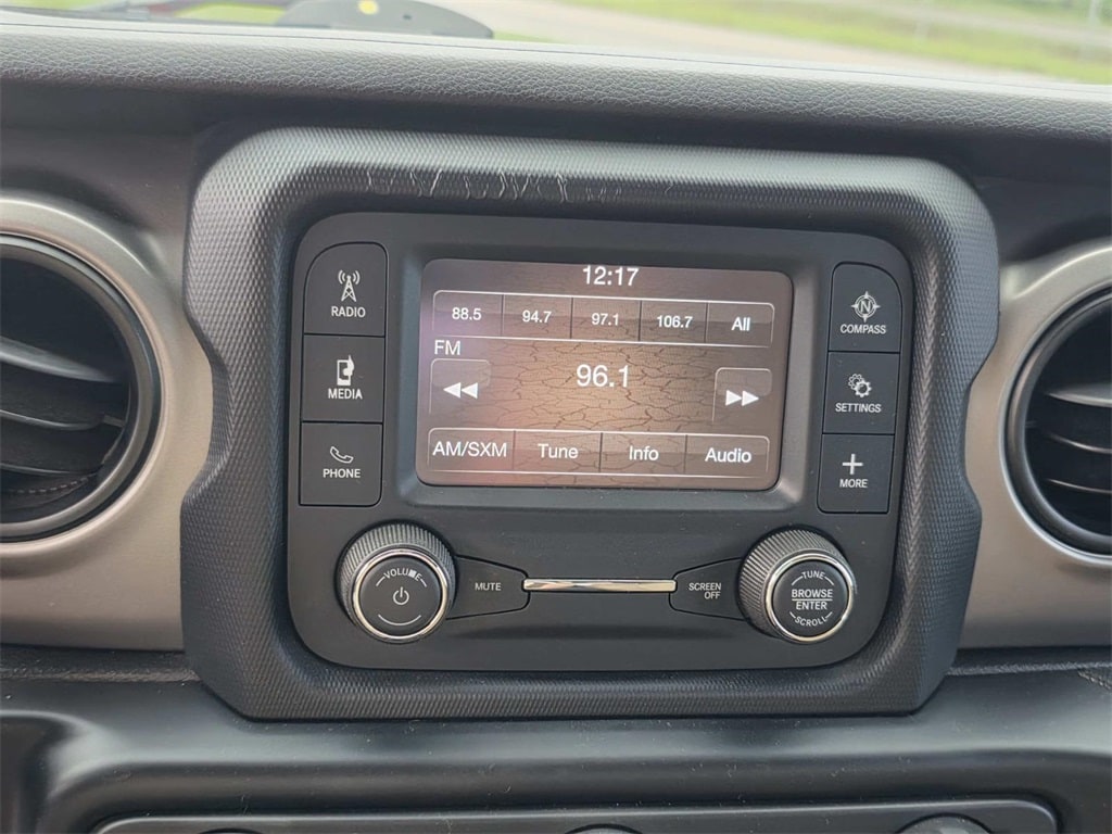 1-Year SiriusXM Radio Service, 110 mph Vehicle Max Speed Calibration, 240 Amp Alternator, 3.73 Rear Axle Ratio, 4-Wheel Disc Brakes, 8 Speakers, ABS brakes, Air Conditioning, AM/FM radio, Anti-Lock 4-Wheel Disc Heavy Duty Brakes, Automatic Headlamps, Brake assist, Class IV Hitch Receiver, Cloth Low-Back Bucket Seats, Compass, Convenience Group, Deep Tint Sunscreen Windows, Delay-off headlights, Driver door bin, Driver vanity mirror, Dual front impact airbags, Dual front side impact airbags, Electronic Stability Control, For More Info, Call 800-643-2112, Front 1-Touch Down Power Windows, Front anti-roll bar, Front Bucket Seats, Front Center Armrest w/Storage, Front fog lights, Front reading lights, GPS Antenna Input, Heavy-Duty Engine Cooling, Integrated roll-over protection, Leather Wrapped Steering Wheel, Low tire pressure warning, Normal Duty Plus Suspension, Normal Duty Suspension, Occupant sensing airbag, Outside temperature display, ParkView Rear Back-Up Camera, Passenger door bin, Passenger vanity mirror, Power Heated Mirrors, Power steering, Power Tailgate Lock, Premium Black Sunrider Soft Top, Quick Order Package 24S, Radio data system, Radio: Uconnect 3 w/5" Display, Rear anti-roll bar, Rear reading lights, Remote Keyless Entry, Security Alarm, SiriusXM Satellite Radio, Speed control, Speed Sensitive Power Locks, Split folding rear seat, Steering wheel mounted audio controls, Sun Visors w/Illuminated Vanity Mirrors, Tachometer, Telescoping steering wheel, Tilt steering wheel, Traction control, Trailer Hitch Zoom, Trailer Tow Package, Trip computer, Universal Garage Door Opener, Variably intermittent wipers, Wheels: 17" x 7.5" Black Steel Styled, Wheels: 17" x 7.5" Tech Silver Aluminum.