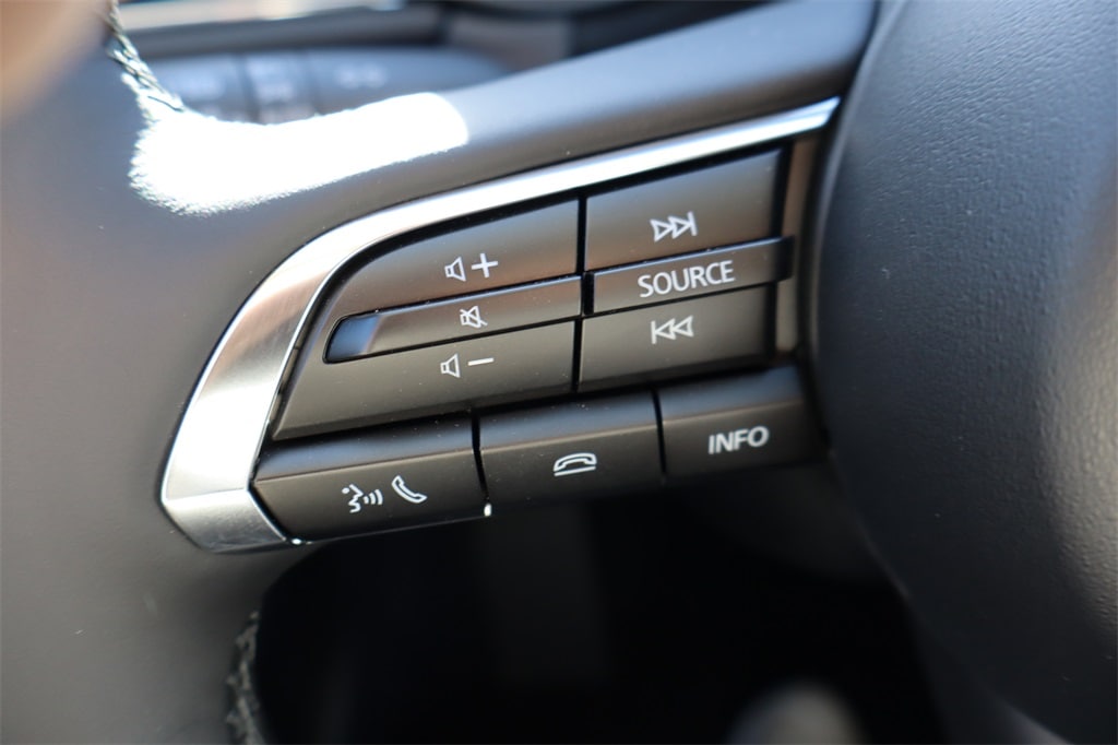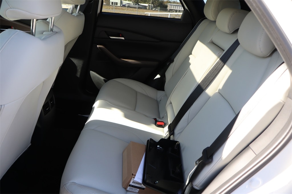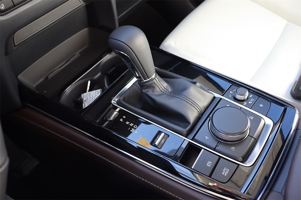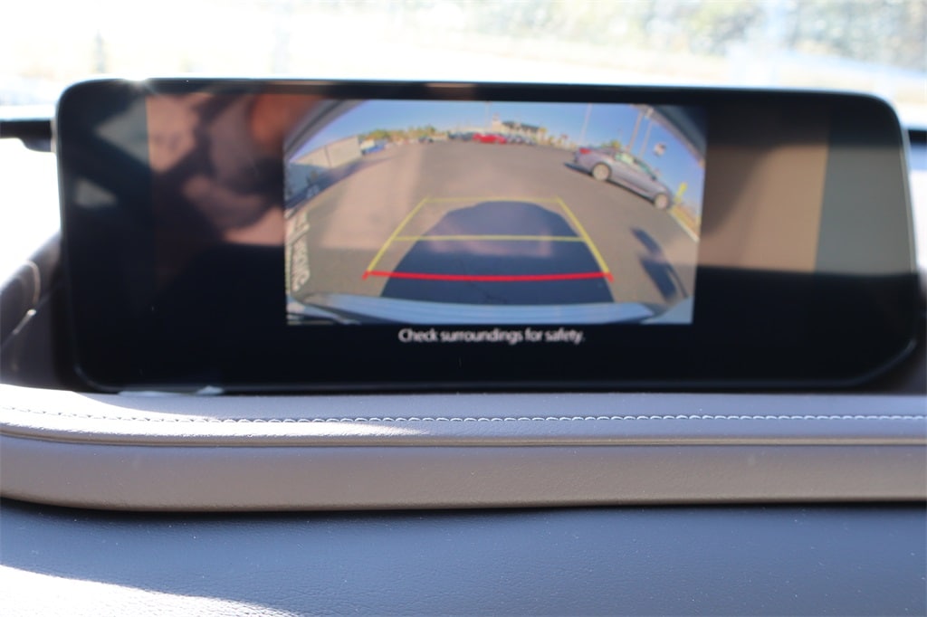 12 Speakers, 4-Wheel Disc Brakes, ABS brakes, Air Conditioning, Alloy wheels, AM/FM radio: SiriusXM, AppLink/Apple CarPlay and Android Auto, Auto High-beam Headlights, Auto-dimming Rear-View mirror, Automatic temperature control, Black Lug Nuts & Black Wheel Locks, Brake assist, Bumpers: body-color, Cargo Cover, Cargo Tray, Compass, Delay-off headlights, Driver door bin, Driver vanity mirror, Dual front impact airbags, Dual front side impact airbags, Electronic Stability Control, Emergency communication system: Mazda Connected Services (3-year trial subscription included), Exterior Parking Camera Rear, Front anti-roll bar, Front Bucket Seats, Front Center Armrest, Front dual zone A/C, Front reading lights, Front wheel independent suspension, Fully automatic headlights, Heads-Up Display, Heated door mirrors, Heated Front Bucket Seats, Heated front seats, Heated steering wheel, Illuminated entry, Knee airbag, Leather Seat Trim, Leather Shift Knob, Leather steering wheel, Low tire pressure warning, MAZDA CONNECT Infotainment System, Memory seat, Navigation system: MAZDA CONNECT, Occupant sensing airbag, Outside temperature display, Overhead airbag, Overhead console, Panic alarm, Passenger door bin, Passenger vanity mirror, Power door mirrors, Power driver seat, Power Liftgate, Power moonroof, Power steering, Power windows, Radio data system, Radio: AM/FM/HD Audio w/Mazda Online Navigation, Rain sensing wipers, Rear seat center armrest, Rear side impact airbag, Rear window defroster, Rear window wiper, Remote keyless entry, Snowflake White Pearl Mica Paint Charge, Speed control, Speed-sensing steering, Split folding rear seat, Spoiler, Stainless Steel Rear Bumper Guard, Steering wheel mounted audio controls, Tachometer, Telescoping steering wheel, Tilt steering wheel, Traction control, Trip computer, Turn signal indicator mirrors, Variably intermittent wipers, Wheels: 18" x 7J Aluminum Alloy.