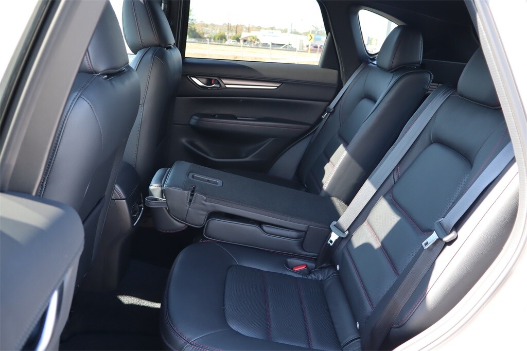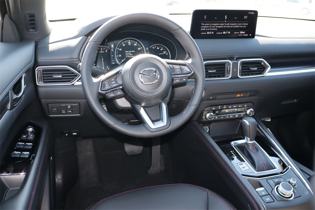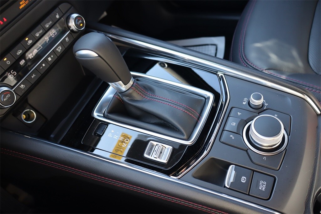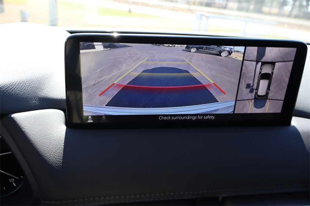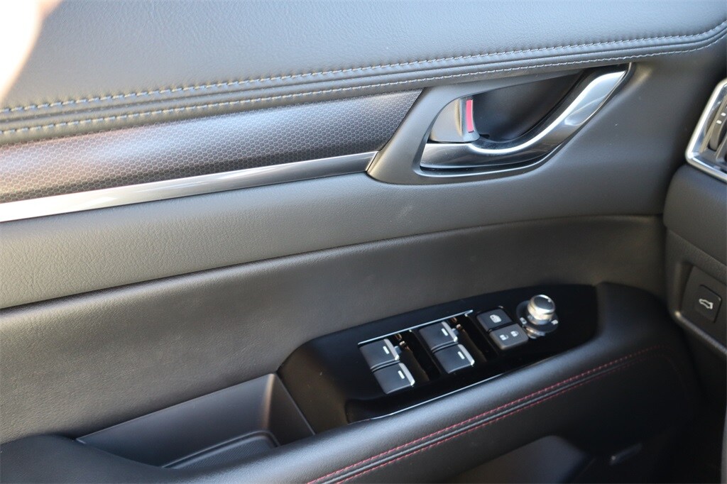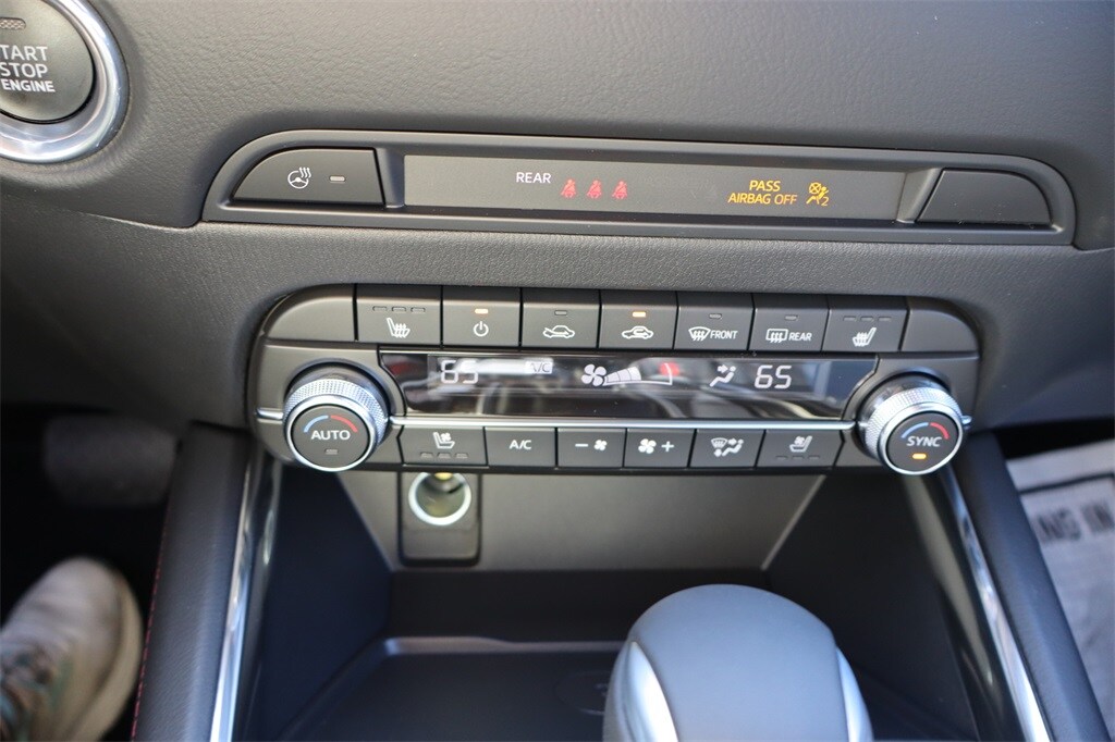 10 Speakers, 4-Wheel Disc Brakes, ABS brakes, Air Conditioning, Alloy wheels, AM/FM radio: SiriusXM, AppLink/Apple CarPlay and Android Auto, Auto High-beam Headlights, Auto-dimming Rear-View mirror, Automatic temperature control, Black Lug Nuts & Black Wheel Locks, Brake assist, Bumpers: body-color, Cargo Mat, Delay-off headlights, Driver door bin, Driver vanity mirror, Dual front impact airbags, Dual front side impact airbags, E911 Automatic Emergency Notification, Electronic Stability Control, Emergency communication system: MAZDA CONNECT, Four wheel independent suspension, Front anti-roll bar, Front Bucket Seats, Front Center Armrest w/Storage, Front dual zone A/C, Front reading lights, Fully automatic headlights, Garage door transmitter: HomeLink, Heads-Up Display, Heated door mirrors, Heated front seats, Heated rear seats, Heated steering wheel, Heated/Ventilated Front Bucket Seats, Illuminated Doorsill Trim Plates, Illuminated entry, Infotainment System Voice Command, Leather Seat Trim, Leather Shift Knob, Leather steering wheel, Low tire pressure warning, Memory seat, Multifunction Commander Control, Occupant sensing airbag, Outside temperature display, Overhead airbag, Overhead console, Pandora, Panic alarm, Passenger door bin, Passenger vanity mirror, Power door mirrors, Power driver seat, Power Liftgate, Power moonroof, Power passenger seat, Power steering, Power windows, Radio Broadcast Data System Program Information, Radio data system, Radio: AM/FM/HD Audio System, Rain sensing wipers, Rear anti-roll bar, Rear Bumper Guard, Rear reading lights, Rear seat center armrest, Rear window defroster, Rear window wiper, Remote keyless entry, SMS Text Msg Audio Delivery & Reply, Speed control, Speed-sensing steering, Split folding rear seat, Spoiler, Steering wheel mounted audio controls, Tachometer, Telescoping steering wheel, Tilt steering wheel, Traction control, Trip computer, Turn signal indicator mirrors, Variably intermittent wipers, Ventilated front seats, Wheels: 19" x 7J Aluminum Alloy.
