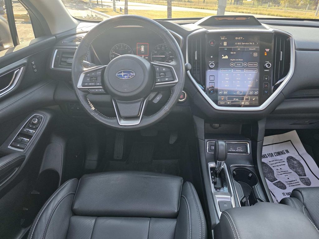 2nd Row Bench Rear Seatback Protector, 3rd row seats: bench, 4-Wheel Disc Brakes, 6 Speakers, ABS brakes, Air Conditioning, All-Weather Floor Liners, Alloy wheels, AM/FM radio: SiriusXM, Auto High-beam Headlights, Auto-Dimming Exterior Mirror w/Approach Light, Auto-dimming Rear-View mirror, Automatic temperature control, Axle Ratio: 4.44, Brake assist, Bumpers: body-color, Cabin Connect, Cargo Tray, Compass, Crystal Black Power-Folding Exterior Power Mirrors, Delay-off headlights, Driver door bin, Driver vanity mirror, Dual front impact airbags, Dual front side impact airbags, Electronic Stability Control, Emergency communication system: STARLINK Safety and Security (Subscription Required), Exterior Parking Camera Rear, Four wheel independent suspension, Front anti-roll bar, Front Bucket Seats, Front Center Armrest, Front dual zone A/C, Front fog lights, Front reading lights, Fully automatic headlights, Garage door transmitter: HomeLink, Heated door mirrors, Heated Front Bucket Seats, Heated front seats, Heated rear seats, Heated steering wheel, HVAC memory, Illuminated entry, Knee airbag, Leather Shift Knob, Leather steering wheel, LED Upgrade, Low tire pressure warning, Memory seat, Occupant sensing airbag, Outside temperature display, Overhead airbag, Overhead console, Panic alarm, Panoramic Power Moonroof w/UV/Drk Tint Dual Glass, Passenger door bin, Passenger vanity mirror, Perforated Leather-Trimmed Upholstery, Popular Package #2, Power door mirrors, Power driver seat, Power Liftgate, Power passenger seat, Power steering, Power windows, Radio data system, Radio: Subaru STARLINK 11.6" Multimedia Nav System, Radio: Subaru STARLINK 11.6" Multimedia Plus System, Rear air conditioning, Rear anti-roll bar, Rear Bumper Cover, Rear reading lights, Rear seat center armrest, Rear window defroster, Rear window wiper, Reclining 3rd row seat, Remote keyless entry, Retractable Cargo Area Cover, Security system, Speed control, Speed-sensing steering, Splash Guards, Split folding rear seat, Spoiler, STARLINK/Apple CarPlay/Android Auto, Steering wheel mounted audio controls, Surround View Monitor System, Tachometer, Technology Package, Telescoping steering wheel, Tilt steering wheel, Traction control, Trip computer, Turn signal indicator mirrors, Variably intermittent wipers, Wheels: 20" x 7.5 J Dk Gray Alloy w/Machine Finish.